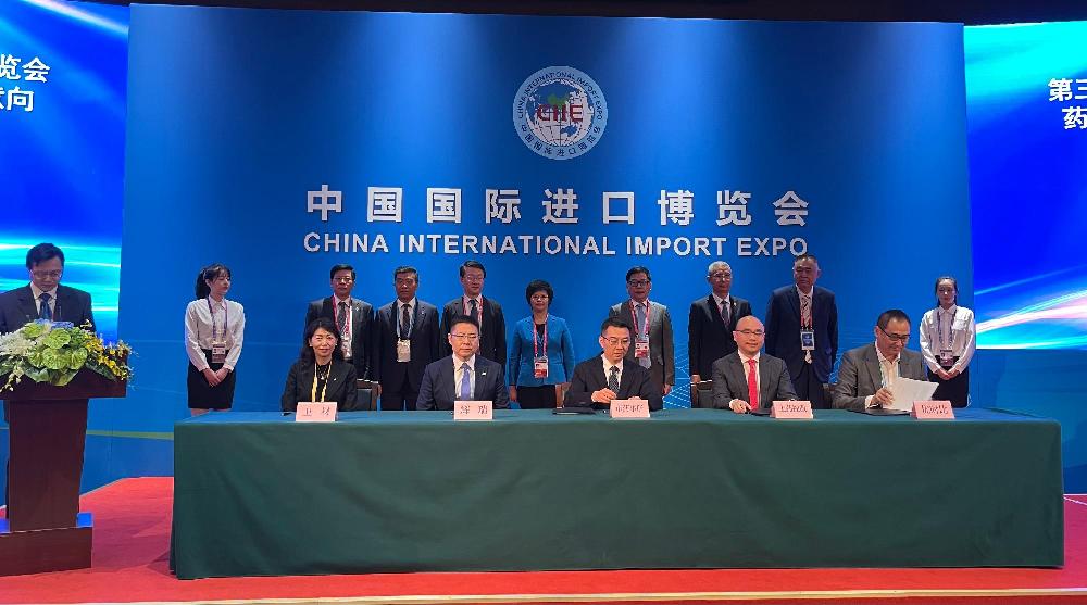 11月8日,上海市醫(yī)保局在進(jìn)博會(huì)現(xiàn)場(chǎng)首次舉行帶量采購中選藥品和高值醫(yī)用耗材采購意向簽約儀式。蒞臨簽約儀式的領(lǐng)導(dǎo)有上海市副市長(zhǎng)宗明,上海市政府副秘書長(zhǎng)顧洪輝,上海市醫(yī)療保障局局長(zhǎng)夏科家,中國國際進(jìn)口博覽局副局長(zhǎng)劉福學(xué),申康醫(yī)院發(fā)展中心主任王興鵬,上海市衛(wèi)生健康委副主任衣承東,上海市藥品監(jiān)督管理局局長(zhǎng)聞大翔,上海市醫(yī)療保障局副局長(zhǎng)羅惠民,上海市醫(yī)療保障局價(jià)格招采處處長(zhǎng)龔波,上海市醫(yī)藥集中招標(biāo)采購事務(wù)管理所所長(zhǎng)朱詩翀等。上海醫(yī)藥執(zhí)行董事、副總裁、上藥控股總經(jīng)理李永忠,上藥控股助理總經(jīng)理宋潞潞等代表上藥控股出席了本次儀式。