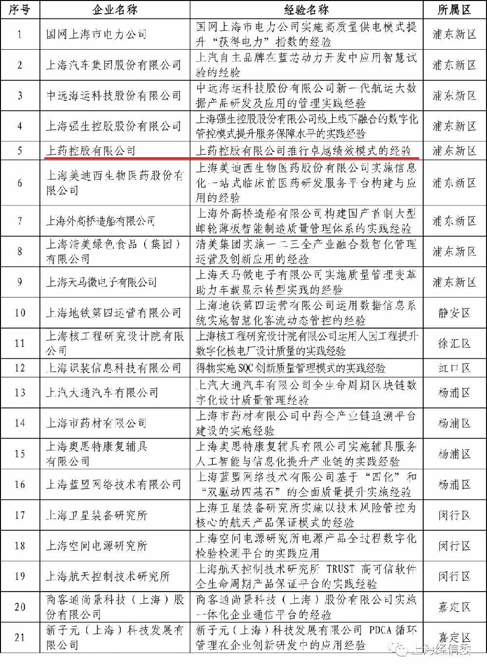 近日,上海市經(jīng)濟信息化委公布了2020年度上海市“質量標桿”名單,上藥控股申報的“上藥控股有限公司推行卓越績效模式的經(jīng)驗”作為本次公示的21項企業(yè)經(jīng)驗之一,成功入選名單。