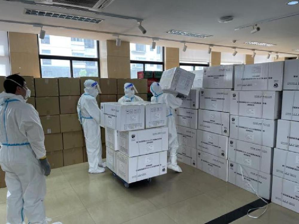 4月,社區(qū)醫(yī)院醫(yī)護(hù)人員分批奔赴各居委進(jìn)行核酸采樣工作,不少中心和站點(diǎn)臨時(shí)性關(guān)閉后,居民出現(xiàn)了用藥呼聲。為此,上海業(yè)務(wù)總部社區(qū)部積極配合社區(qū)醫(yī)院采購(gòu)藥品,滿(mǎn)足居民的用藥需求。站點(diǎn)藥師也紛紛返崗,憑借專(zhuān)業(yè)知識(shí)助力居委志愿者們指導(dǎo)配藥、安全用藥。部分郊區(qū)的中心衛(wèi)生服務(wù)中心關(guān)閉后,村衛(wèi)生室臨時(shí)替代了中心點(diǎn),上海業(yè)務(wù)總部及時(shí)調(diào)整配送地址,滿(mǎn)足村衛(wèi)生室的用藥需求,做到保供一個(gè)都不落。在嘉定區(qū),上藥嘉定充分挖掘潛力,確保延伸處方和長(zhǎng)處方等患者配到足夠的藥品,助力疫情封控期間社區(qū)衛(wèi)生服務(wù)中心有藥可供。上海業(yè)務(wù)總部上藥滬郊對(duì)口服務(wù)的郊縣地區(qū)的村鎮(zhèn)衛(wèi)生室分散,但又肩負(fù)著周邊居民就醫(yī)配藥的最后一公里“生命線”。為了提升運(yùn)輸效能,加快配送速率,上藥滬郊一線代表及時(shí)溝通郊縣的社區(qū)衛(wèi)生中心,將部分村衛(wèi)生室的藥品與中心站點(diǎn)的藥品集中配送,聯(lián)系志愿者分揀后再分送到各個(gè)衛(wèi)生室,確?;颊呒皶r(shí)能獲取藥品。4月下旬,上藥嘉定接到任務(wù),需要將120萬(wàn)人份抗原試劑盒運(yùn)送至嘉定江橋鎮(zhèn)、真新街道。上藥嘉定第一時(shí)間采購(gòu)調(diào)貨,落實(shí)運(yùn)送工作,及時(shí)補(bǔ)足街鎮(zhèn)物資缺口,第二天就將共計(jì)1200箱抗原試劑分別送往街鎮(zhèn)指定地點(diǎn)。一支13人的小分隊(duì)從上午到下午不間斷清點(diǎn)、卸貨,經(jīng)過(guò)4個(gè)多小時(shí)的爭(zhēng)分奪秒,百萬(wàn)余份試劑于當(dāng)日悉數(shù)送達(dá)2個(gè)街鎮(zhèn),為第二天抗原檢測(cè)試劑的配送提供了有力保障。上藥青浦也堅(jiān)持24小時(shí)響應(yīng)各社區(qū)街道防疫物資配送的需求,員工們沒(méi)有作息時(shí)間表,哪里有需要,就往哪里出車(chē)。