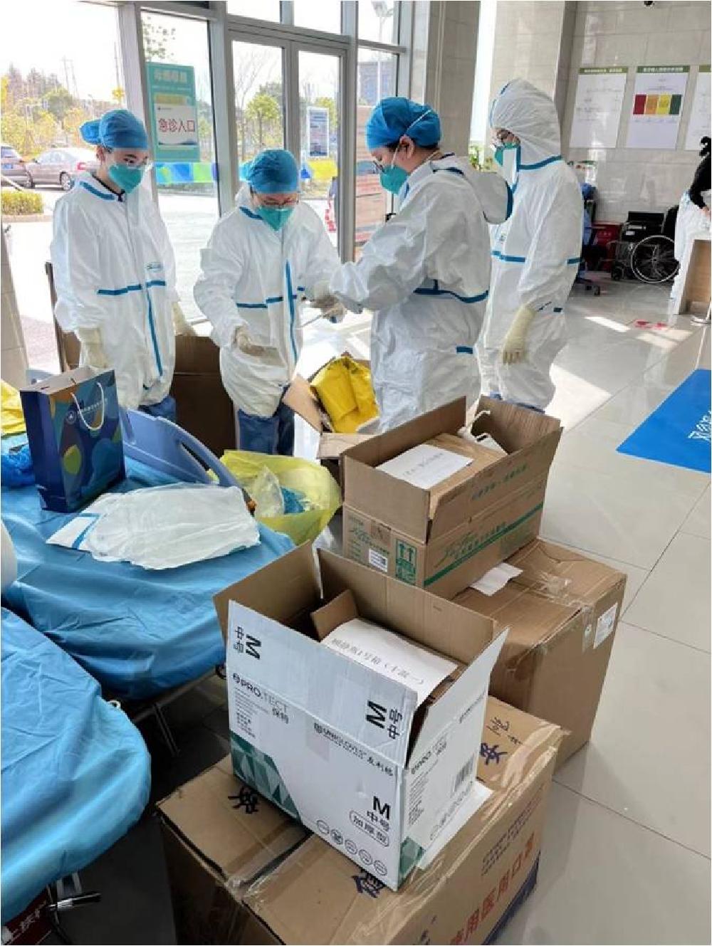 除了金山公衛(wèi)中心的SPD團(tuán)隊(duì),對(duì)口安亭、仁濟(jì)南、龍華、市一南、胸科醫(yī)院、龍華、兒中心、市一北醫(yī)院等SPD團(tuán)隊(duì)都堅(jiān)持主動(dòng)服務(wù)各科室,與廣大醫(yī)護(hù)人員同心戰(zhàn)疫,共守家園。