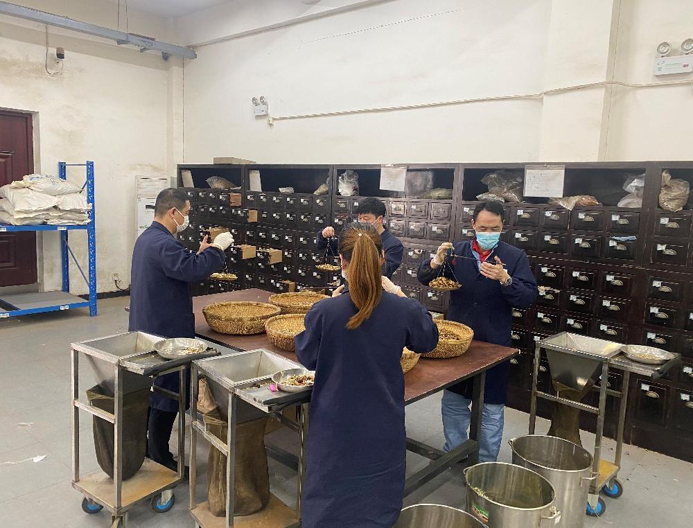 3月3日起,松江區(qū)衛(wèi)健委向上藥余天成(上海)醫(yī)藥有限公司西林代煎部征集疫情防控中藥湯劑。短短時(shí)間,湯劑需求量就從每日的1600貼增至6000貼。代煎部全體員工連續(xù)加班加點(diǎn),抽調(diào)各部門(mén)援手相助,累計(jì)已完成23000多包湯劑和21個(gè)點(diǎn)位的配煎送任務(wù),每天都確保將熱乎乎的防疫湯劑交到前哨一線人員手上。