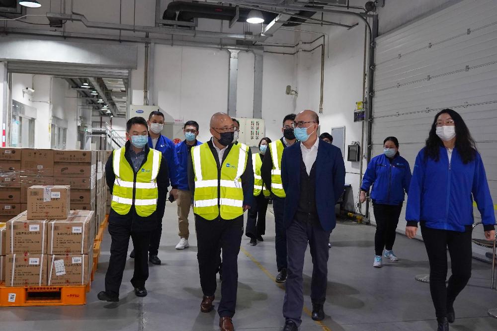 3月17日下午,上海醫(yī)藥執(zhí)行董事、總裁左敏,上海醫(yī)藥集團(tuán)黨委委員、上海醫(yī)藥執(zhí)行董事、副總裁、上藥控股總經(jīng)理李永忠,上海醫(yī)藥副總裁張耀華,上海醫(yī)藥集團(tuán)黨委委員、工會(huì)主席佘群一行前往上海醫(yī)藥物流中心有限公司綏德庫(kù)、豐饒庫(kù),檢查備貨保供工作,并慰問(wèn)上海醫(yī)藥物流的一線工作人員。
